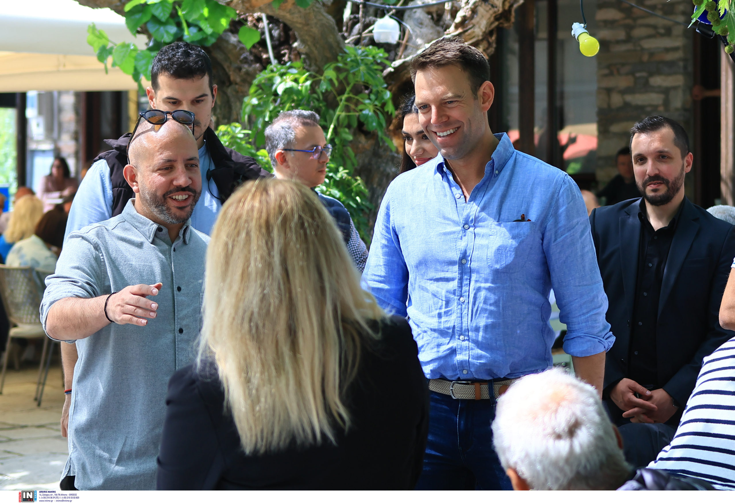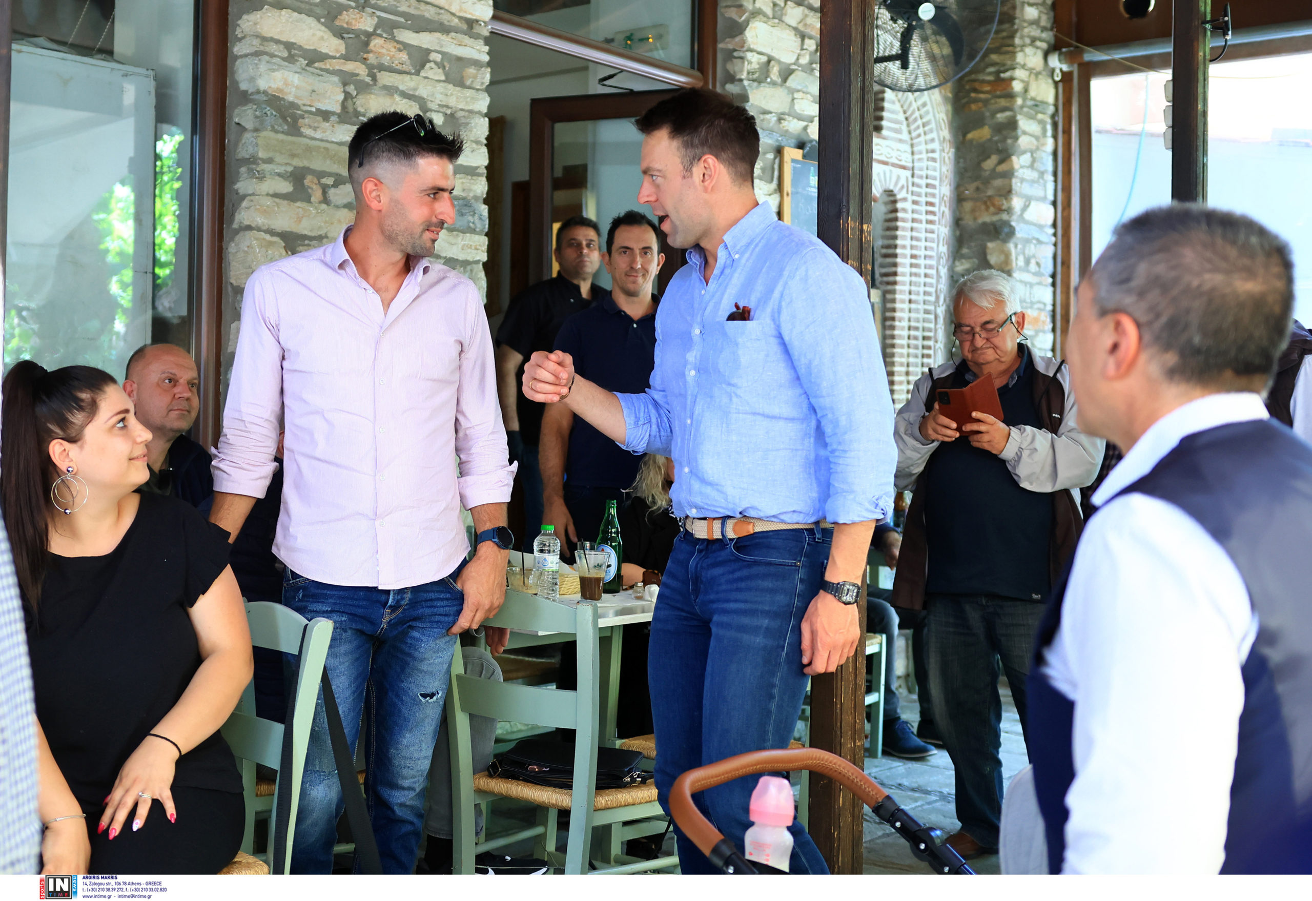 Η συνέχεια δόθηκε στην πλατεία των Καναλίων όπου με τη συντροφιά των τοπικών παραγόντων ο κ. Κασσελάκης δοκίμασε τοπικό τσίπουρο και μεζέδες.