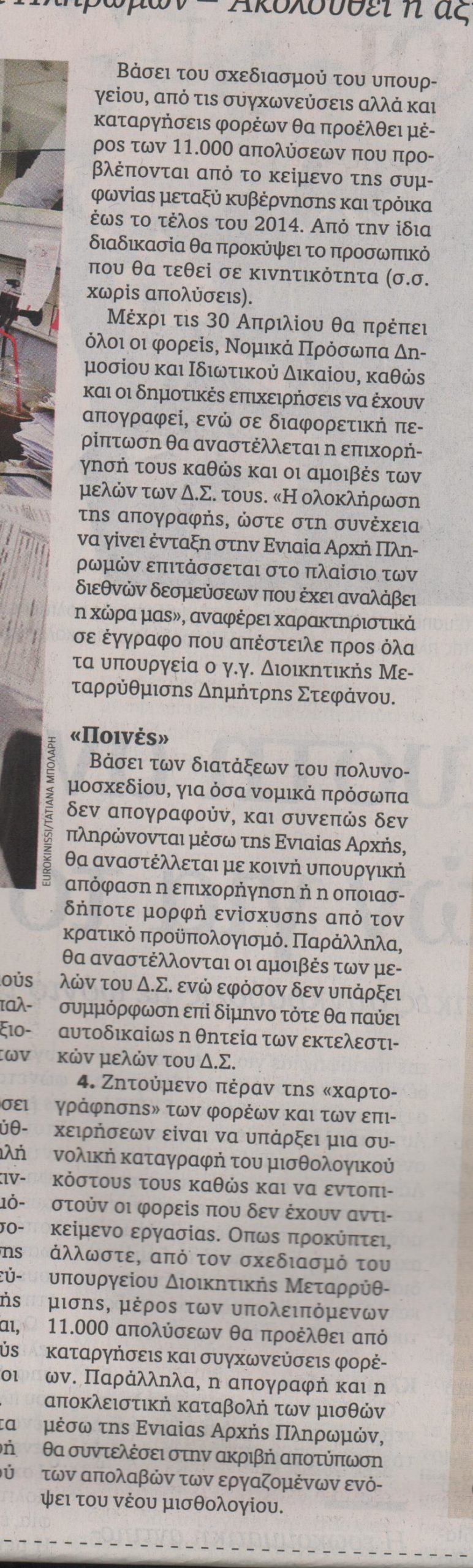 Στην τελική ευθεία για την εδραίωση των απαιτούμενων αλλαγών, προκειμένου να επέλθει αναδιάρθρωση του Δημοσίου, αλλά και να επιτευχθούν οι μνημονιακές δεσμεύσεις που αφορούν 11.000 απολύσεις και εφαρμογή νέου μισθολογίου από τον Ιανουάριο του 2015 βρίσκεται η κυβέρνηση.
