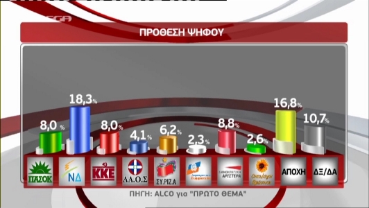 Ίδια εικόνα για το πολιτικό σύστημα αποτυπώνει και η μέτρηση της ALCO που δημοσιεύει το Πρώτο Θέμα.