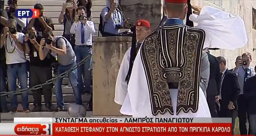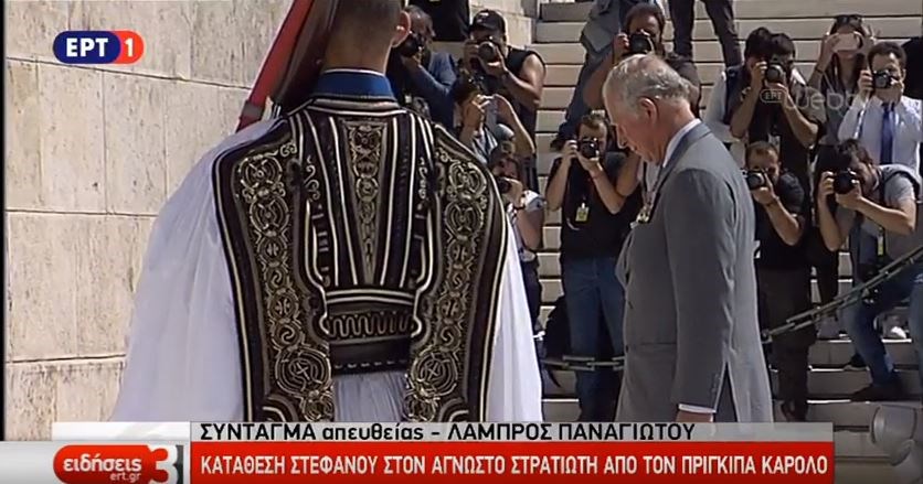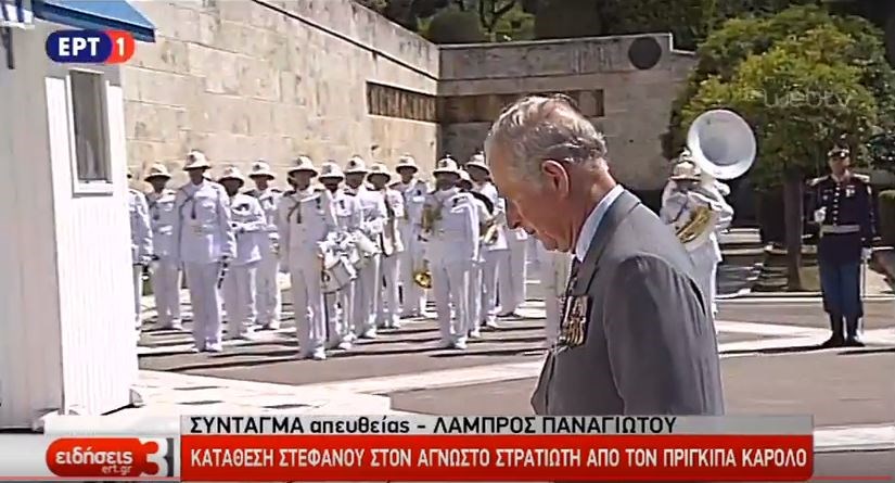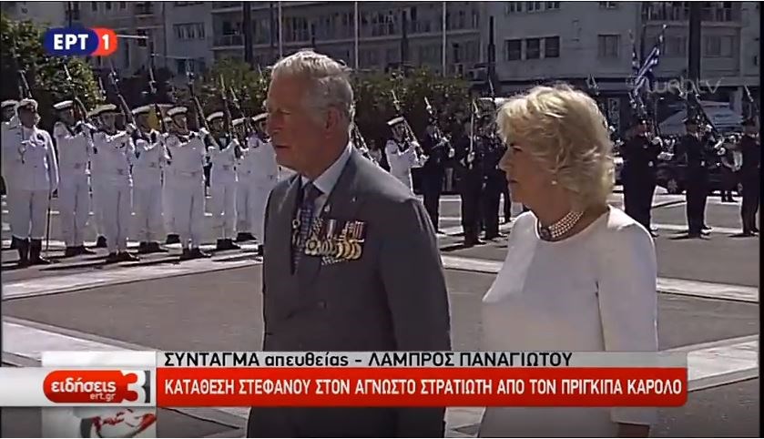 Στο μνημείο του Άγνωστου Στρατιώτη μπροστά από τη Βουλή βρέθηκε πριν από λίγο ο Πρίγκιπας Κάρολος και η δούκισσα της Κορνουάλης, Καμίλα καταθέτοντας στεφάνι.