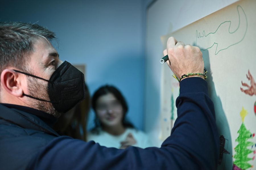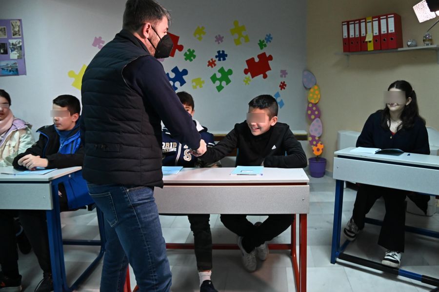 Τα παιδιά του είπαν τα κάλαντα, ενώ κατά τη διάρκεια της επίσκεψης ο κ. Ανδρουλάκης μπήκε στην τάξη των μικρών μαθητών και συμμετείχε στα διαδραστικά τους παιχνίδια.