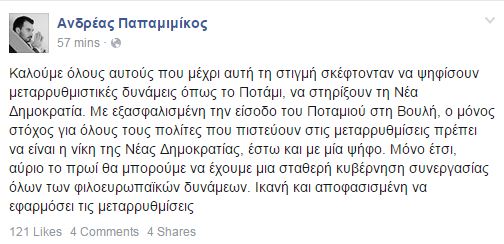 Η ανάρτηση του Ανδρέα Παπαμιμίκου στο Facebook