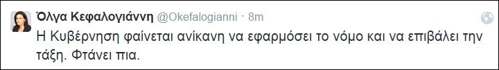 «Η Κυβέρνηση φαίνεται ανίκανη να εφαρμόσει το νόμο και να επιβάλει την τάξη. Φτάνει πια», έγραψε.