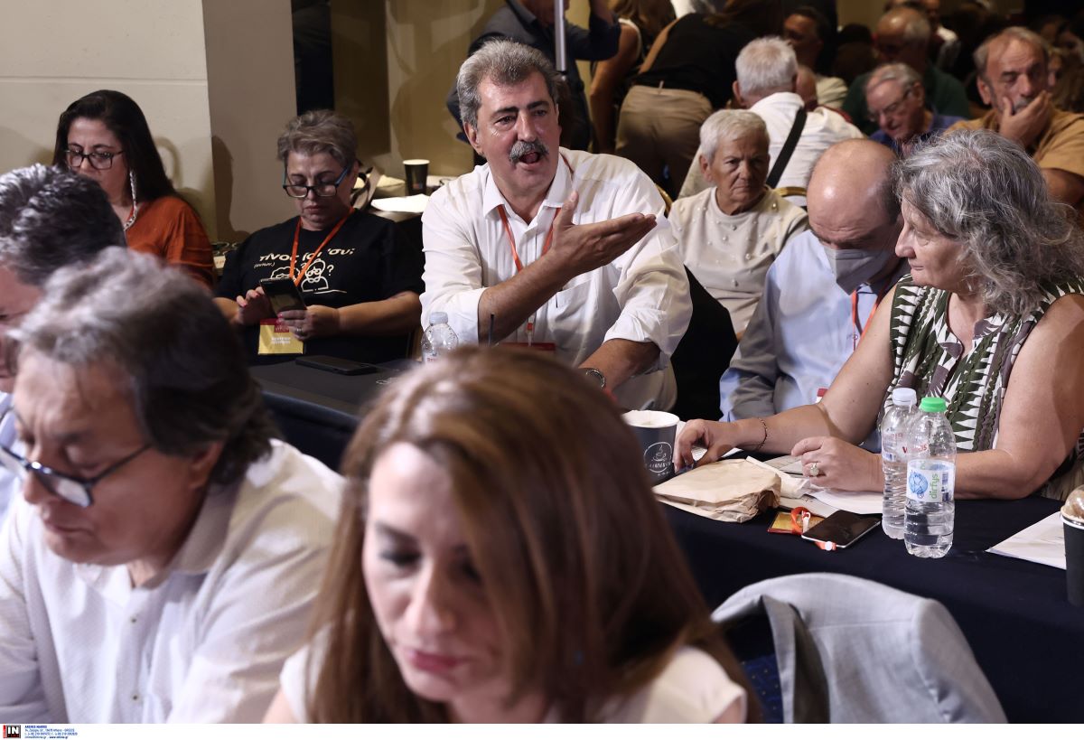 Ο πρόεδρος της Κοινοβουλευτικής Ομάδας του ΣΥΡΙΖΑ, Νίκος Παππάς κάθισε στην πρώτη θέση μαζί με την γραμματέα της Κεντρικής Επιτροπής του κόμματος, Ράνια Σβίγκου.