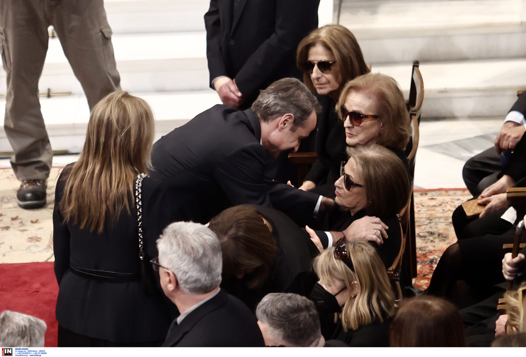 Ο Κυριάκος Μητσοτάκης έφτασε στη Μητρόπολη Αθηνών στις 11:45. Αμέσως ο Πρωθυπουργός συλλυπήθηκε την χήρα του Κώστα Σημίτη, Δάφνη.