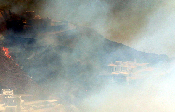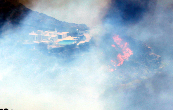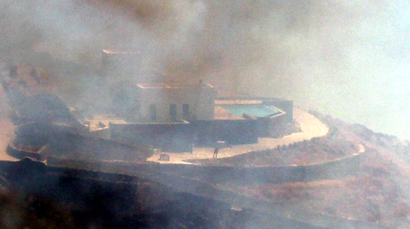 Το μεσημέρι του Σαββάτου η φωτιά έφτασε μέχρι το σημείο που βρίσκονται οι δύο βίλες, προκαλώντας πανικό, αφού οι φλόγες περικύκλωσαν και τα δύο εξοχικά.