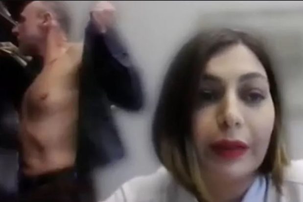 Η βουλευτής μιλούσε σε ζωντανή σύνδεση μέσω του laptop της και πίσω της ο ηθοποιός και επίσης βουλευτής, άρχισε ανέμελος να ξεκουμπώνει το πουκάμισο που φορούσε.