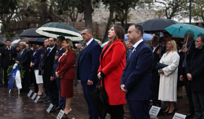 Ο Χρήστος Κέλλας εκπροσωπούσε την κυβέρνηση και βρισκόταν δίπλα στην πρόεδρο της Πλεύσης Ελευθερίας.