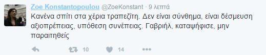 Μήνυμα προς τον Γαβριήλ Σακελλαρίδη έστειλε η πρώην πρόεδρος της Βουλής, Ζωή Κωνσταντοπούλου μέσω του λογαριασμού της στο twitter. Η κ. Κωνσταντοπούλου κάλεσε τον κ. Σακελλαρίδη “να καταψηφίσει και να μην παραιτηθεί”: