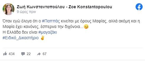 Η Ζωή Κωνσταντοπούλου πήρε θέση για τη συνομιλία Μιωνύ Παππα που βγήκε στη δημοσιότητα και “σφάζει” κυριολεκτικά το Νίκο Παππά με ανάρτηση της στο facebook.