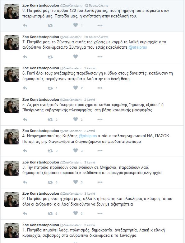 Η πρώην Πρόεδρος της Βουλής, Ζωή Κωνσταντοπούλου έγραψε στο Twitter: