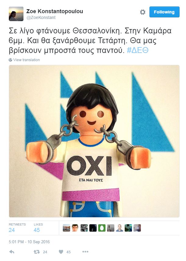 «Θα μας βρίσκουν μπροστά τους παντού» δήλωσε μέσω twitter η επικεφαλής της «Πλεύσης Ελευθερίας» Ζωή Κωνσταντοπούλου.
