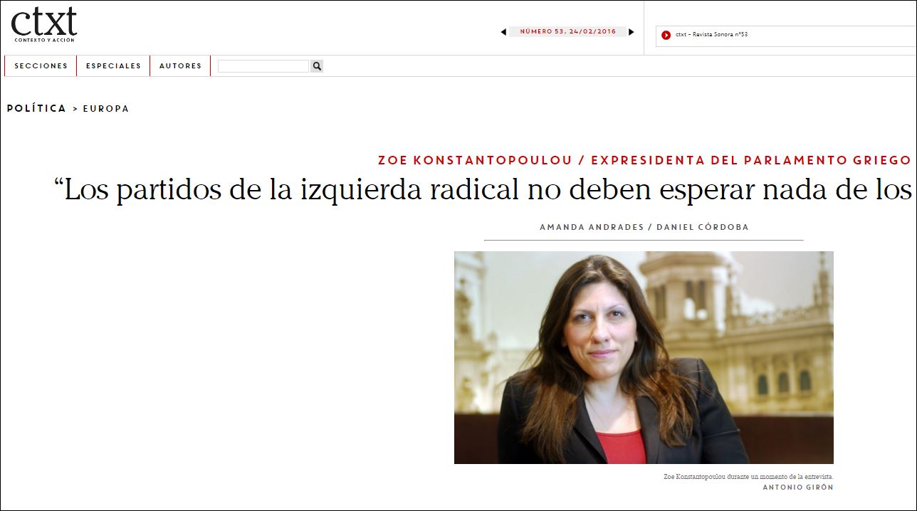 Διαβάστε ολόκληρη τη συνέντευξη της Ζωής Κωνσταντοπούλου στο ctxt:
