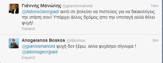 “Μην χαίρεστε Άδωνι,αυτό δεν σημαίνει οτι συμφωνούν μαζί σας,το αντίθετο!Απλά δεν εμπιστεύονται τις συνδικαλιστικές ηγεσίες!”, του απάντησε ο Γιάννης Μανώλης.