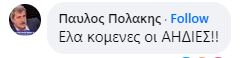Η Έλενα Ακρίτα απάντησε κάτω από το σχόλιο του Παύλου Πολάκη και του του έθεσε το ερώτημα «ποιος είναι ο κανονικός κόσμος ακριβώς»;