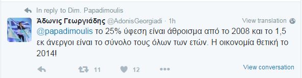 Άμεση ήταν η αντίδραση του αντιπροέδρου της Νέας Δημοκρατίας, Άδωνι Γεωργιάδη, ο οποίος με ανάρτηση στο Twitter, απάντησε στον Δημήτρη Παπαδημούλη.