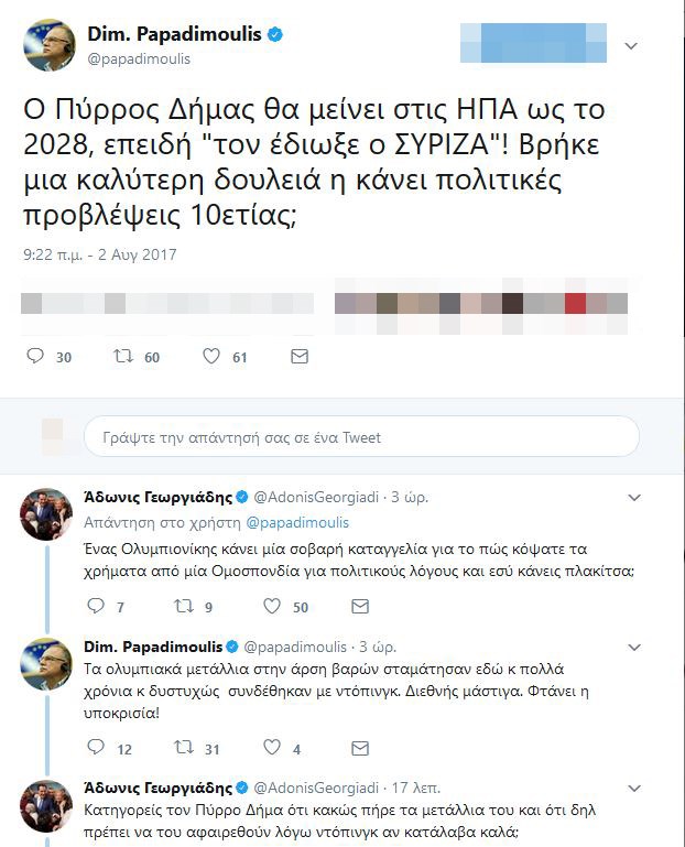 Δείτε τη συνομιλία στο twitter μεταξύ του κ. Παπαδημούλη και του κ. Γεωργιάδη: