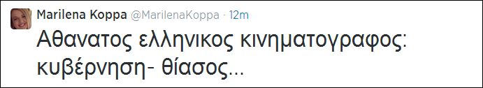 «Αθάνατος ελληνικός κινηματογράφος: κυβέρνηση- θίασος…»,έγραψε.