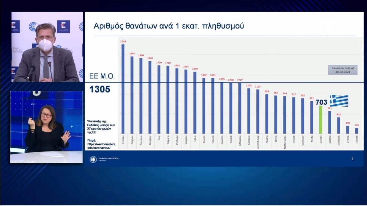 Έκανε λόγο για συστράτευση κράτους και πολιτών μέσα από την εμπιστοσύνη και την αλήθεια «για να φτάσουμε με ασφάλεια στο τέλος της περιπέτειας». Όπως τόνισε στη συνέχεια, στην Ελλάδα τα έχουμε πάει καλύτερα από πολλές άλλες χώρες στην ΕΕ, οι οποίες έχουν πληγεί από τρία ή και τέσσερα κύματα. Είμαστε 26οι στους 27 σε κρούσματα Covid και 23οι σε θανάτους, πρόσθεσε. Και ειδικά για τους θανάτους ο κ. Σκέρτσος επισήμανε: «Δυστυχώς οι θάνατοι από covid είναι δυστυχώς ο πιο σκληρός, αλλά και ο πιο αδιάψευστος δείκτης για τη διαχείριση αυτή της πανδημίας. Είναι μία μακάβρια στατιστική που δείχνει, όμως, ξεκάθαρα τη στόχευση της στρατηγικής μας. Να σώσουμε όσες περισσότερες ζωές γίνονται σε έναν ασύμμετρο πόλεμο. Δουλεύουν, στερούν την ελευθερία μας, αλλά φέρνουν αποτέλεσμα».