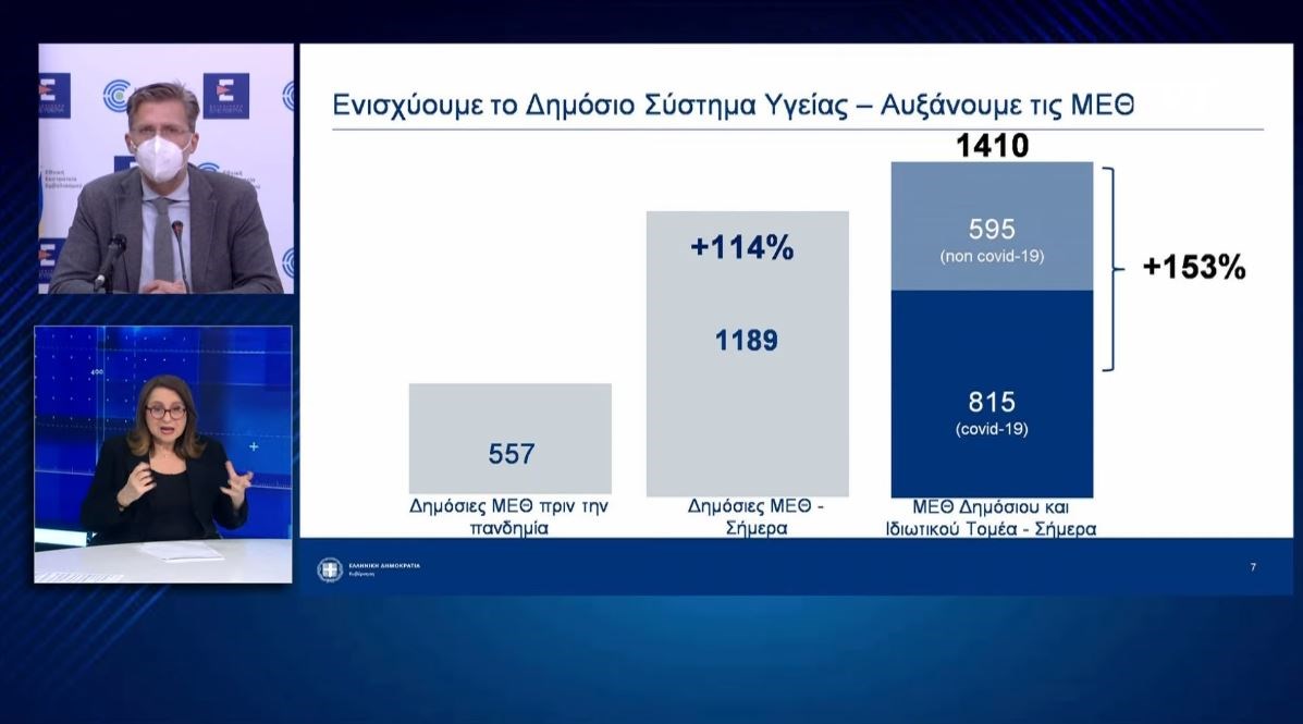 «Είχαμε 800 τεστ την ημέρα και σήμερα είμαστε ανάμεσα στις πρώτες σε αριθμό τεστ», είπε ακόμη ο κ. Σκέρτσος, ο οποίος αναφέρθηκε στην ενίσχυση του ΕΣΥ και την αύξηση των ΜΕΘ. «Από την αρχή της πανδημίας, η ενίσχυση του ΕΣΥ ήταν προτεραιότητά μας», ανέφερε επισημαίνοντας πως «οι δημόσιες ΜΕΘ μαζί με αυτές του ιδιωτικού τομέα παρουσιάζουν αύξηση 153%».Ταυτόχρονα ο κ. Σκέρτσος αναφέρθηκε και στην κυβερνητική μέριμνα για το υγειονομικό προσωπικό. «Έγιναν περισσότερες από 10.000 προσλήψεις έκτακτου επικουρικού υγειονομικού προσωπικού και περισσότερες από 1.200 προσλήψεις μόνιμων γιατρών».