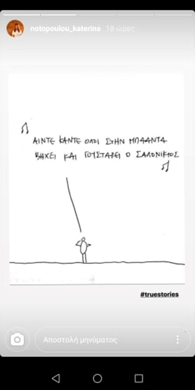 Αντιδράσεις προκάλεσαν στα social media οι αναρτήσεις της βουλευτή του ΣΥΡΙΖΑ, Κατερίνας Νοτοπούλου σχετικά με τον κορονοϊό.Η βουλευτής του ΣΥΡΙΖΑ, θέλοντας μάλλον να δείξει πως δεν τρομάζει από τον ιό, ανέβασε story στο Instagram με τα οποία κάνει… χιούμορ για τα κρούσματα που σημειώθηκαν στη Θεσσαλονίκη, παραφράζοντας στίχους τραγουδιών.Δείτε τις αναρτήσεις: