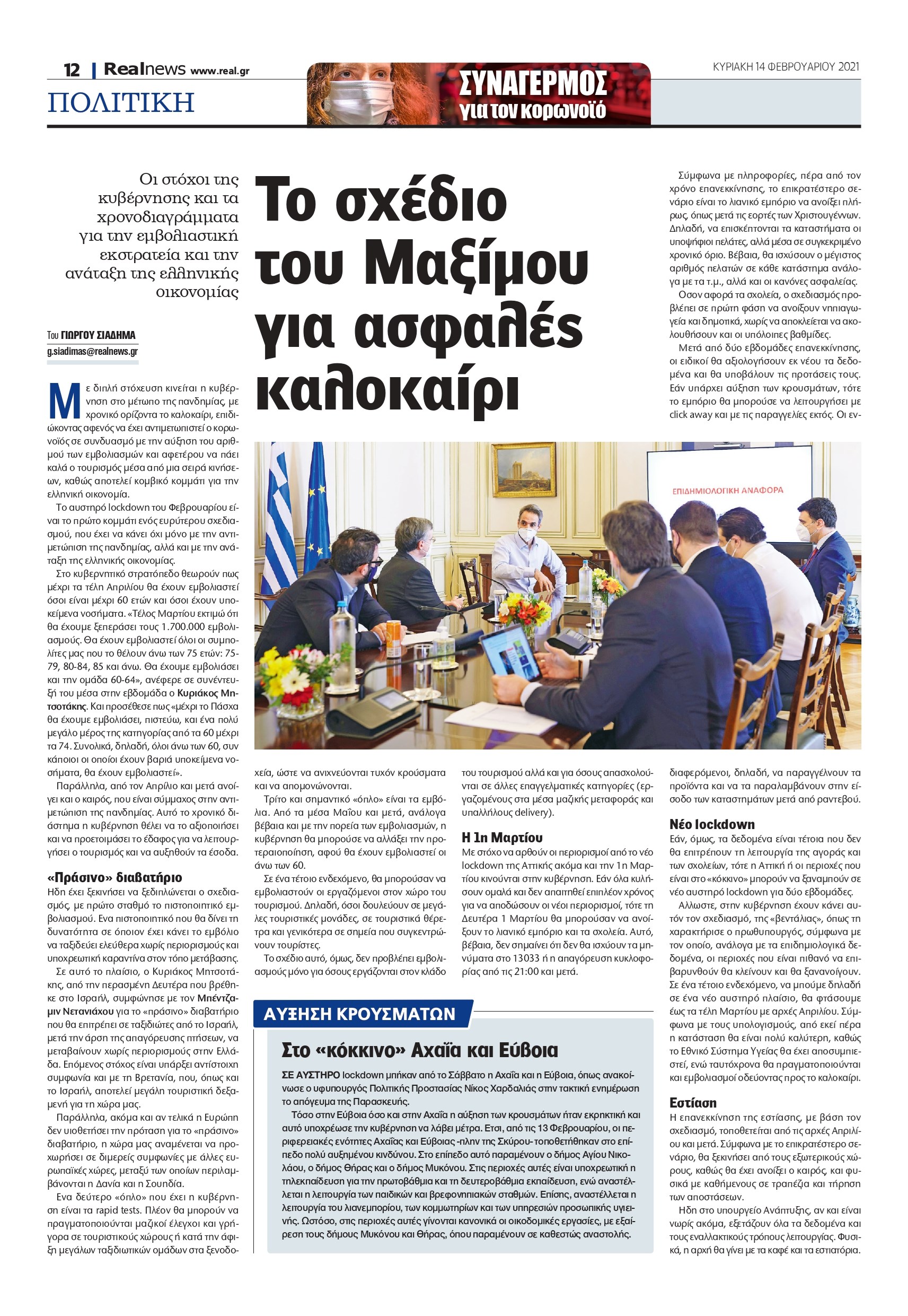 Το αυστηρό lockdown του Φεβρουαρίου είναι το πρώτο κομμάτι ενός ευρύτερου σχεδιασμού, που έχει να κάνει όχι μόνο με την αντιμετώπιση της πανδημίας, αλλά και με την ανάταξη της ελληνικής οικονομίας.