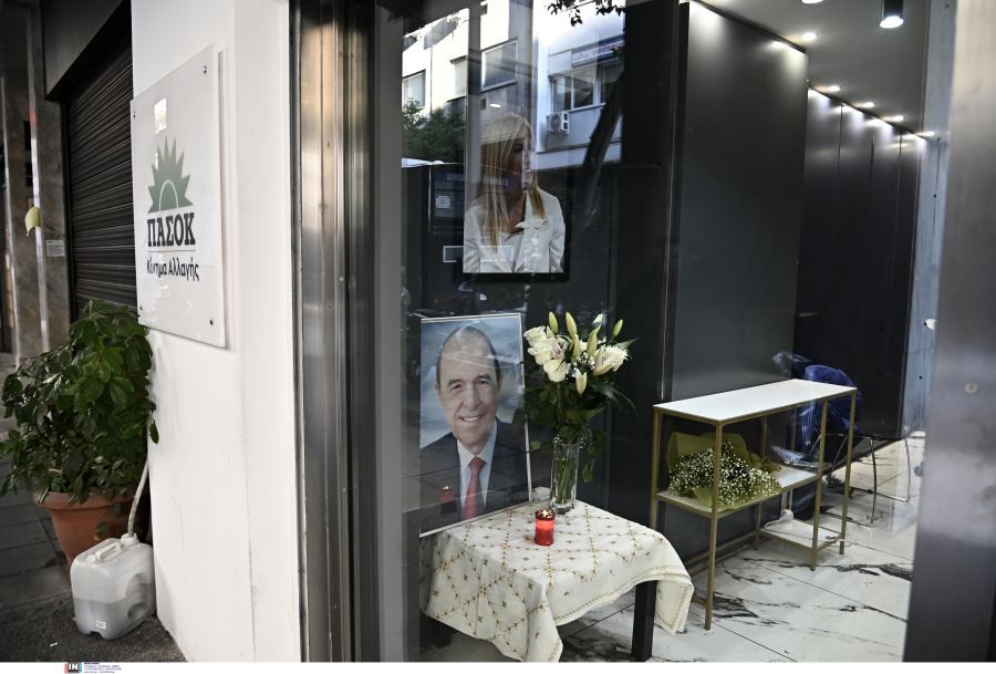 Στην είσοδο των γραφείων του ΠΑΣΟΚ στην Χαριλάου Τρικούπη έχει τοποθετηθεί μία φωτογραφία του πρώην πρωθυπουργού και πρώην προέδρου του κόμματος, μαζί με λουλούδια και ένα κερί.