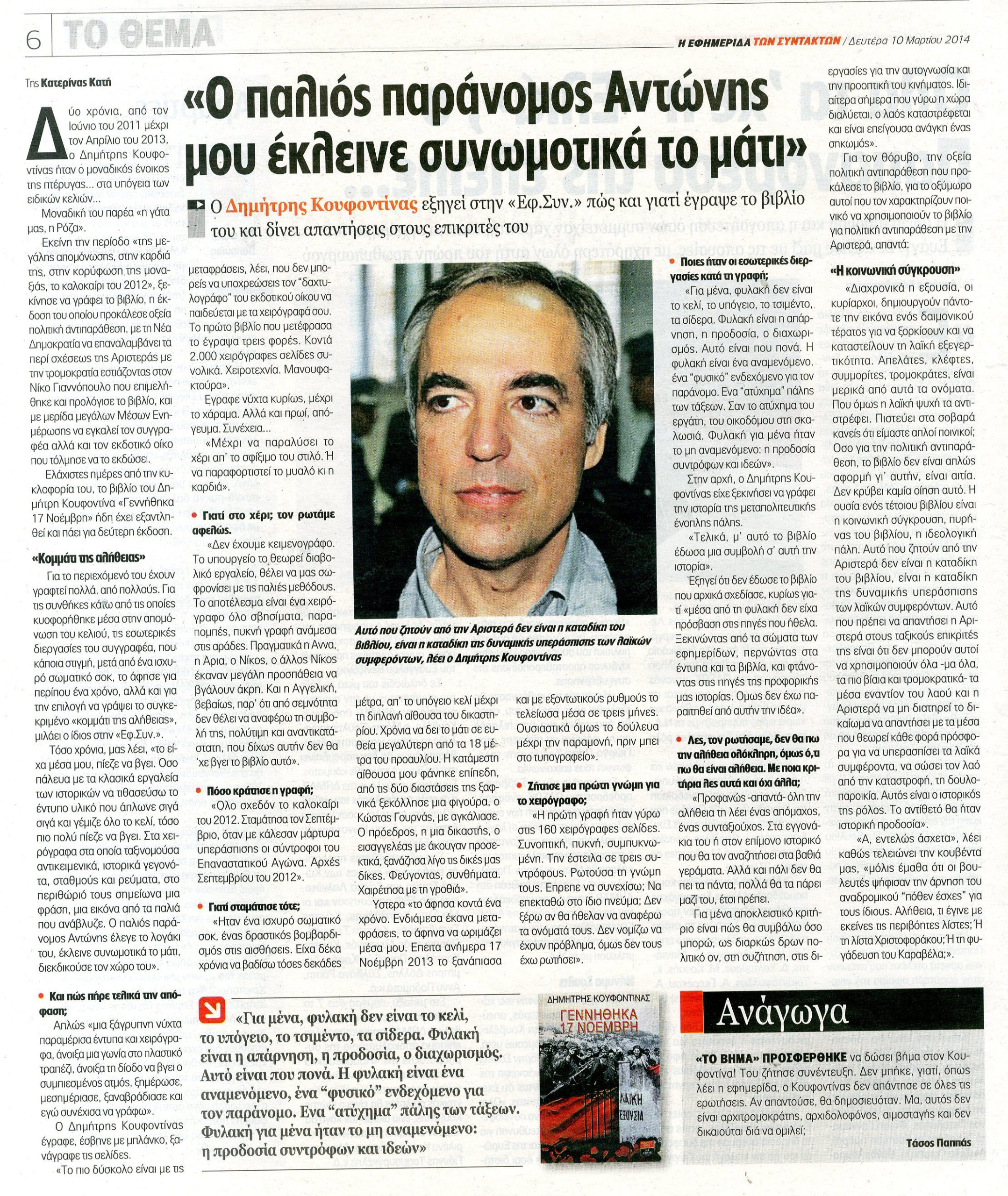 Πατήστε πάνω στη φωτογραφία και διαβάστε αναλυτικά όσα είπε στην «Εφημερίδα των Συντακτών»