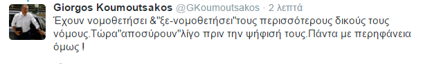 Κουμουτσάκος: Έχουν νομοθετήσει και ξε-νομοθετήσει τους δικούς τους νόμους