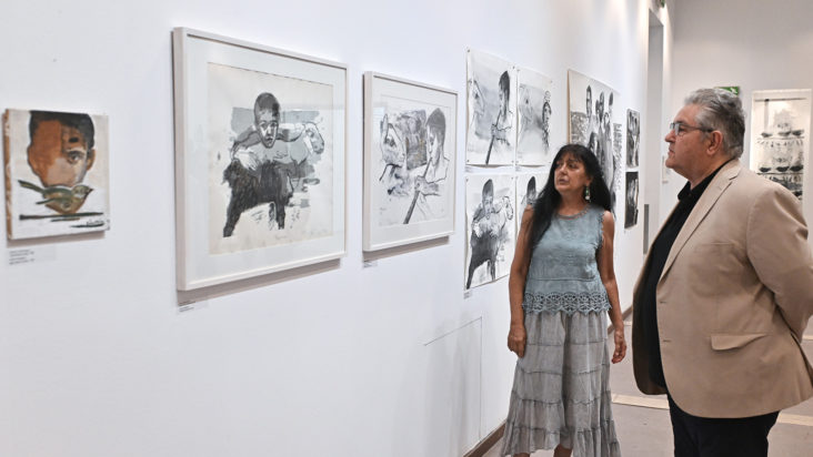 Συζήτησαν για τα έργα που εκτίθενται, με αφετηρία των περισσότερων, που δημιουργήθηκαν τα τελευταία χρόνια, να είναι ο «εγκλεισμός» σε καταυλισμούς και στρατόπεδα συγκέντρωσης που βιώνουν χιλιάδες άνθρωποι, θύματα των πολέμων, των ανταγωνισμών, μετανάστες και πρόσφυγες. Αντίστοιχα της τελευταίας τριετίας είναι η πλειοψηφία των έργων που αναφέρονται στην Παλαιστίνη.