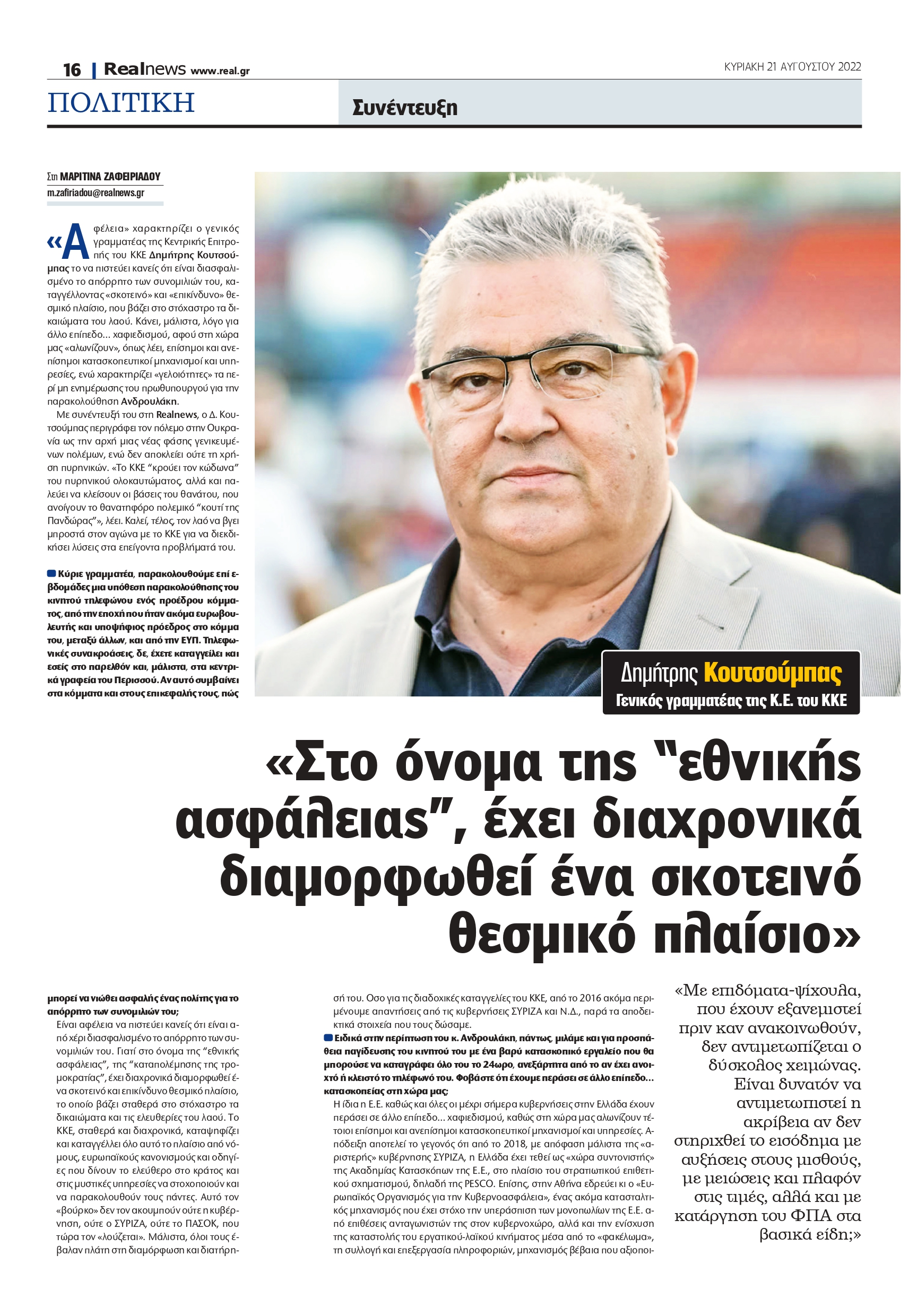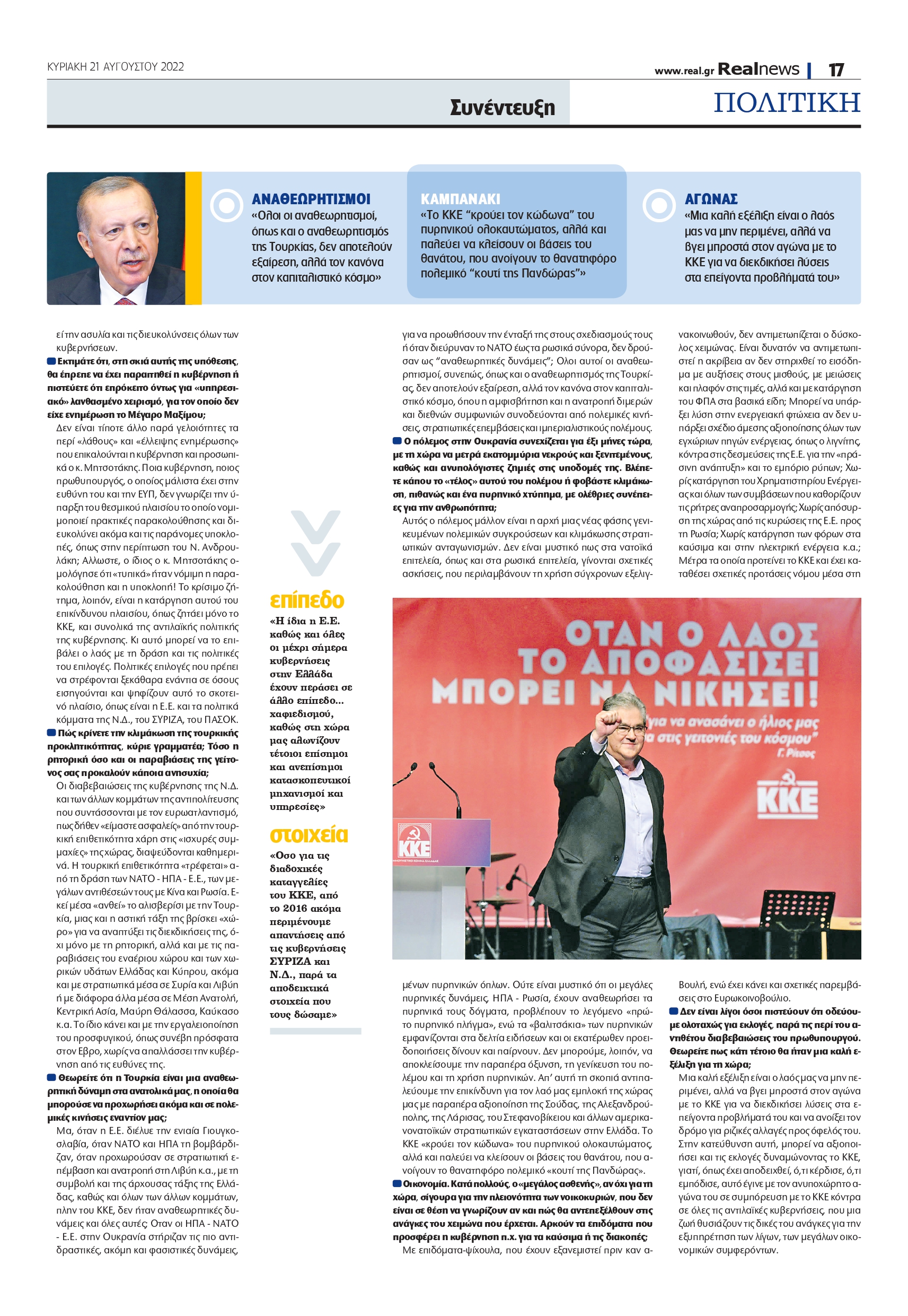 Διαβάστε αναλυτικά τη συνέντευξη στη Realnews