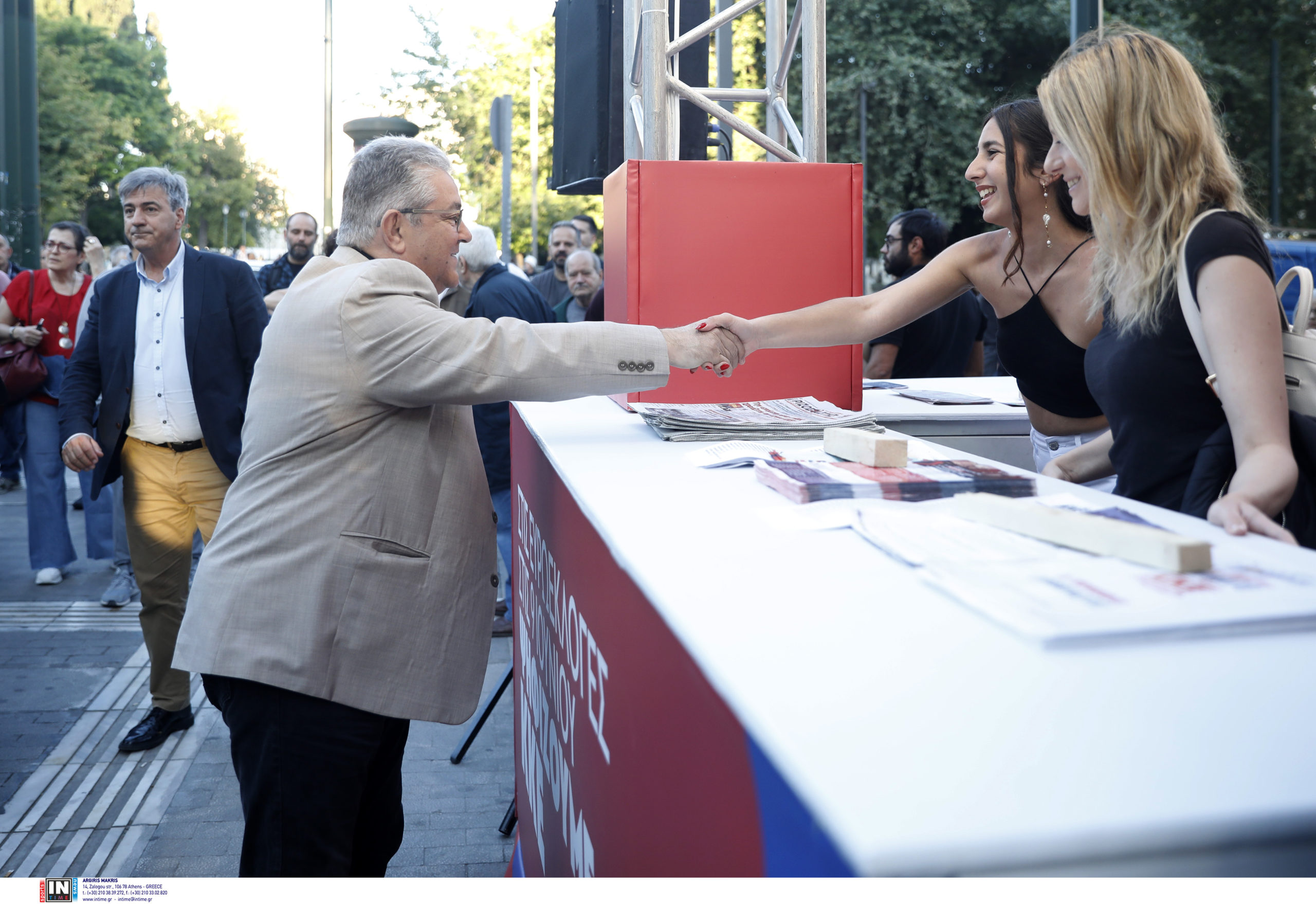 Στα εγκαίνια του εκλογικού περιπτέρου του κόμματος παρευρέθηκε πολυμελής αντιπροσωπεία της ΚΕ του ΚΚΕ.