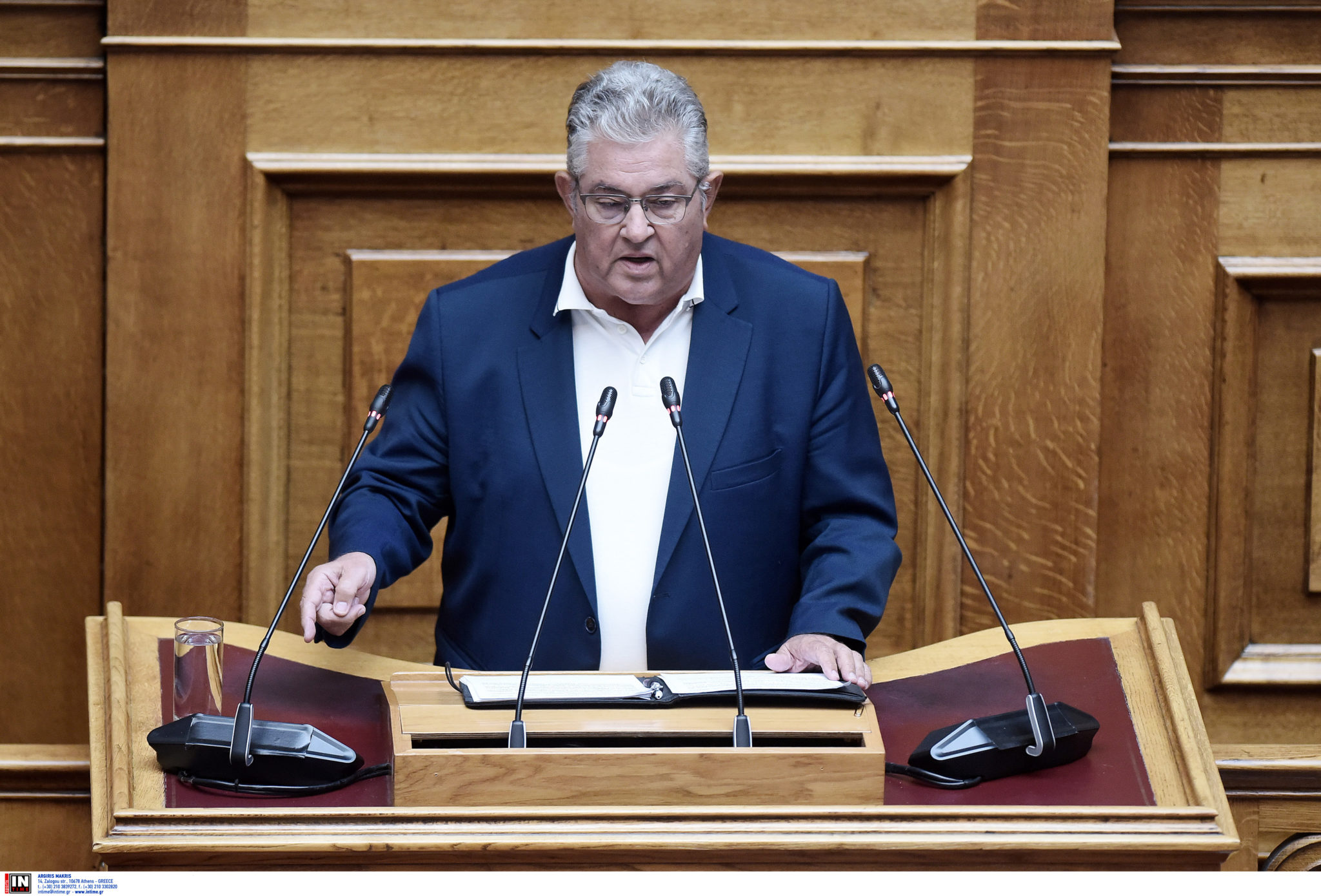 Ο Δημήτρης Κουτσούμπας κατηγόρησε την κυβέρνηση ότι «την ώρα που λέτε ότι στηρίζετε τον αμυνόμενο στην Ουκρανία, που μόνο αμυνόμενο δεν είναι εκεί το ΝΑΤΟ, οι ΗΠΑ, η ΕΕ, το καθεστώς Ζελένσκι, όπως, άλλωστε, δεν είναι αμυνόμενη ούτε η Ρωσία, ταυτόχρονα στηρίζετε τον επίσης απροκάλυπτα επιτιθέμενο, τον κατακτητή δηλαδή, αυτόν που διαπράττει γενοκτονία στη Γάζα, που σκοτώνει και με βόμβες και με λιμό, που βομβαρδίζει νοσοκομεία και σκοτώνει δημοσιογράφους, που προωθεί παράνομους εποικισμούς στη δυτική Όχθη». «Μιλάω φυσικά για τον στρατηγικό σας σύμμαχο το κράτος-δολοφόνο του Ισραήλ και τον κολλητό σας εγκληματία πολέμου τον Νετανιάχου», είπε. Υποστήριξε ο ελληνικός λαός απαιτεί να υλοποιηθεί εδώ και τώρα η ομόφωνη απόφαση της ελληνικής Βουλής από το 2015 για αναγνώριση ανεξάρτητου παλαιστινιακού κράτους στα σύνορα του 1967 με πρωτεύουσα την Αν. Ιερουσαλήμ. Ο κ. Κουτσούμπας σχολίασε, επίσης, ότι περιμένει από τον κ. Ανδρουλάκη να εξηγήσει το ΠΑΣΟΚ «για ποιον λόγο ανοίγετε σήμερα θέμα ”επικαιροποίησης” της συγκεκριμένης απόφασης και μάλιστα με μια επιστολή που αποτελεί ”βούτυρο στο ψωμί” της κυβέρνησης της ΝΔ, αφού αναπαράγει τον προκλητικό ισχυρισμό περί ”δικαιώματος του Ισραήλ -του κατακτητή δηλαδή για πολλά χρόνια εκεί- στην αυτοάμυνα”, εξισώνοντας έτσι το θύτη με το θύμα». «Το ξεκαθαρίζουμε άλλη μια φορά: Δεν υπάρχει κανένας λόγος, ούτε για ”επικαιροποίηση”, ούτε για ”επιβεβαίωση” της απόφασης, η οποία είναι σαφέστατη και ισχύει στο ακέραιο», υπογράμμισε.