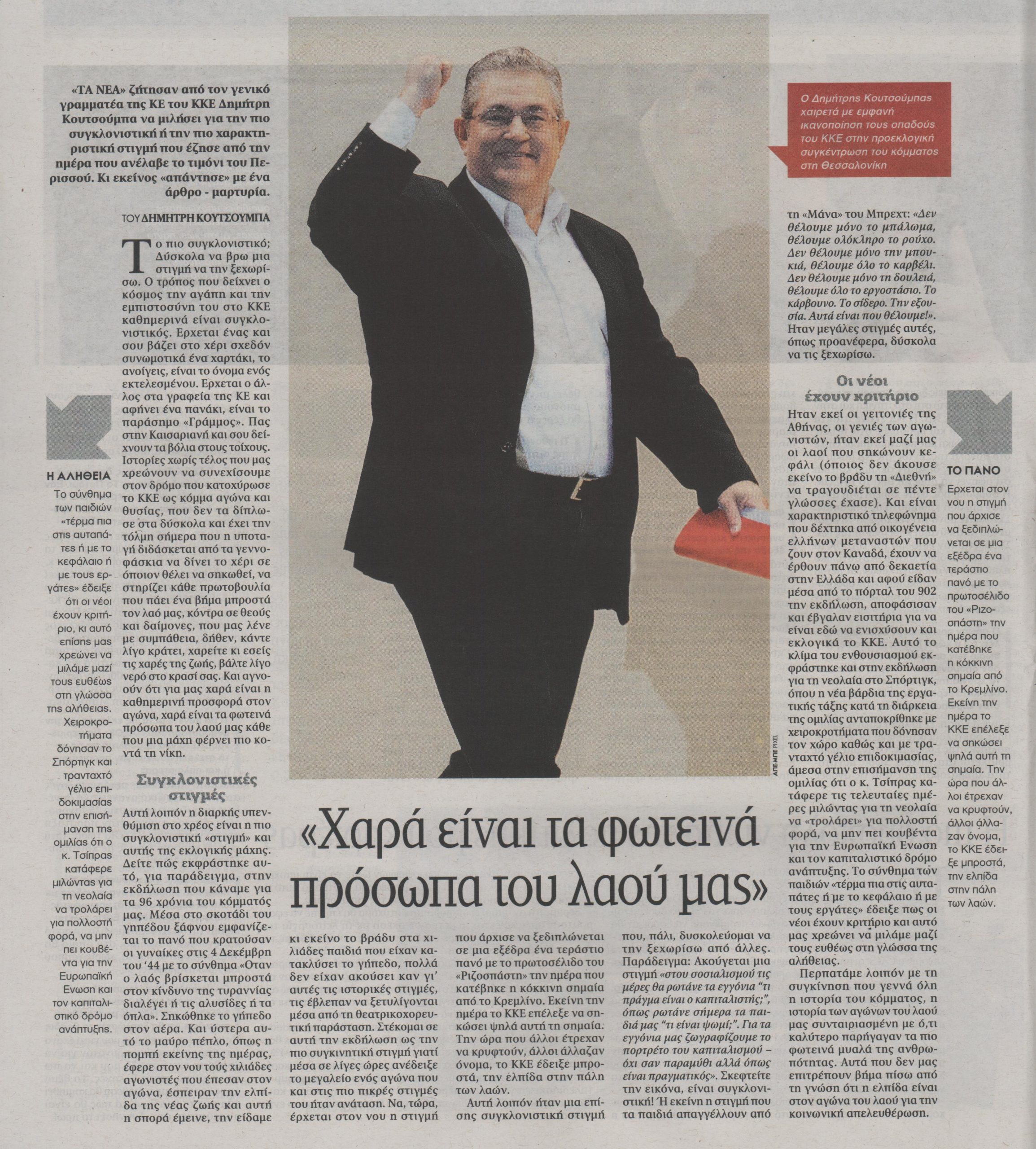 Πατήστε πάνω στη φωτογραφία και διαβάστε αναλυτικά το άρθρο του κ. Δημήτρη Κουτσούμπα στην εφημερίδα «Τα Νέα»: