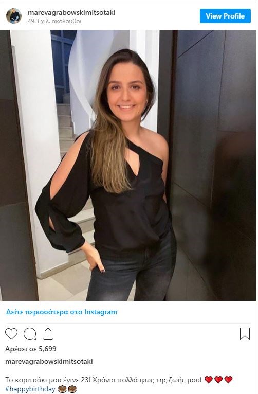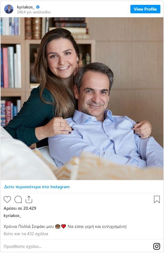 Γενέθλια έχει σήμερα η κόρη του Κυριάκου Μητσοτάκη και της Μαρέβα Γκραμπόφκσι, Σοφία. Η Σοφία έγινε 23 ετών και οι γονείς της, της ευχήθηκαν και… μέσω Instagram, αναρτώντας φωτογραφίες της “Χρόνια πολλά Σοφάκι μου. Να είσαι γερή και ευτυχισμένη”, έγραψε ο Πρωθυπουργός, ενώ ανάλογη ανάρτηση έκανε και η σύζυγός του, Μαρέβα Γκραμπόφσκι. “Το κοριτσάκι μου έγινε 23! Χρόνια πολλά φως της ζωής μου!”, έγραψε χαρακτηριστικά.