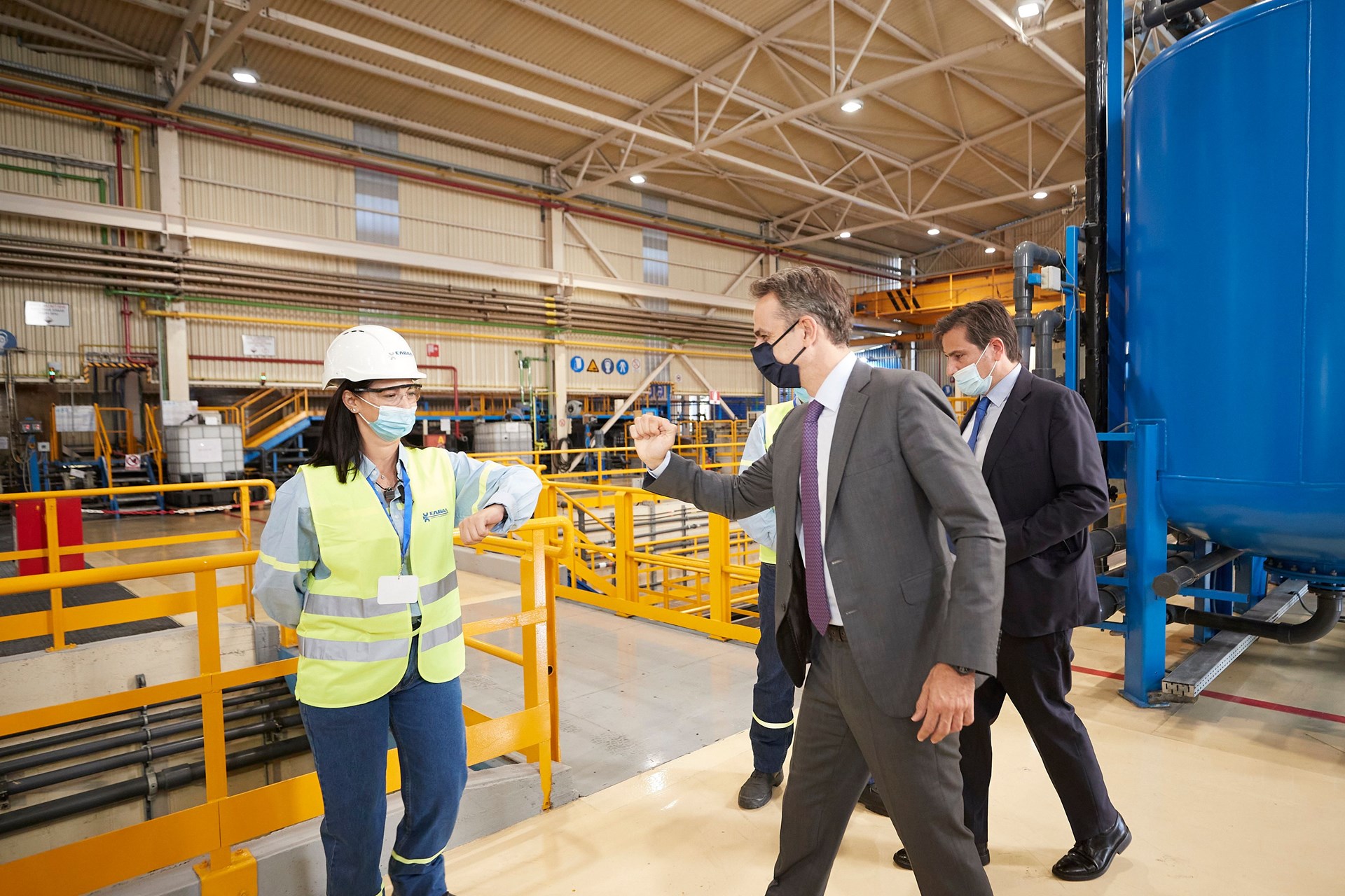 Συζητήθηκε πολύ στα social media η μάσκα που φόρεσε ο Πρωθυπουργός Κυριάκος Μητσοτάκης, στην παρουσίαση της νέας επένδυσης της ΕΛΒΑΛ που θα πραγματοποιηθεί στο εργοστάσιο της εταιρείας, στα Οινόφυτα Βοιωτίας. Όλοι οι παρευρισκόμενοι στην εκδήλωση φορούσαν προστατευτικές μάσκες, τηρώντας τα μέτρα προστασίας για τον κορονοϊό. Τα βλέμματα τράβηξε η μπλε μάσκα που φόρεσε ο Κυριάκος Μητσοτάκης, η οποία είχε ραμμένη πάνω δεξιά την ελληνική σημαία.