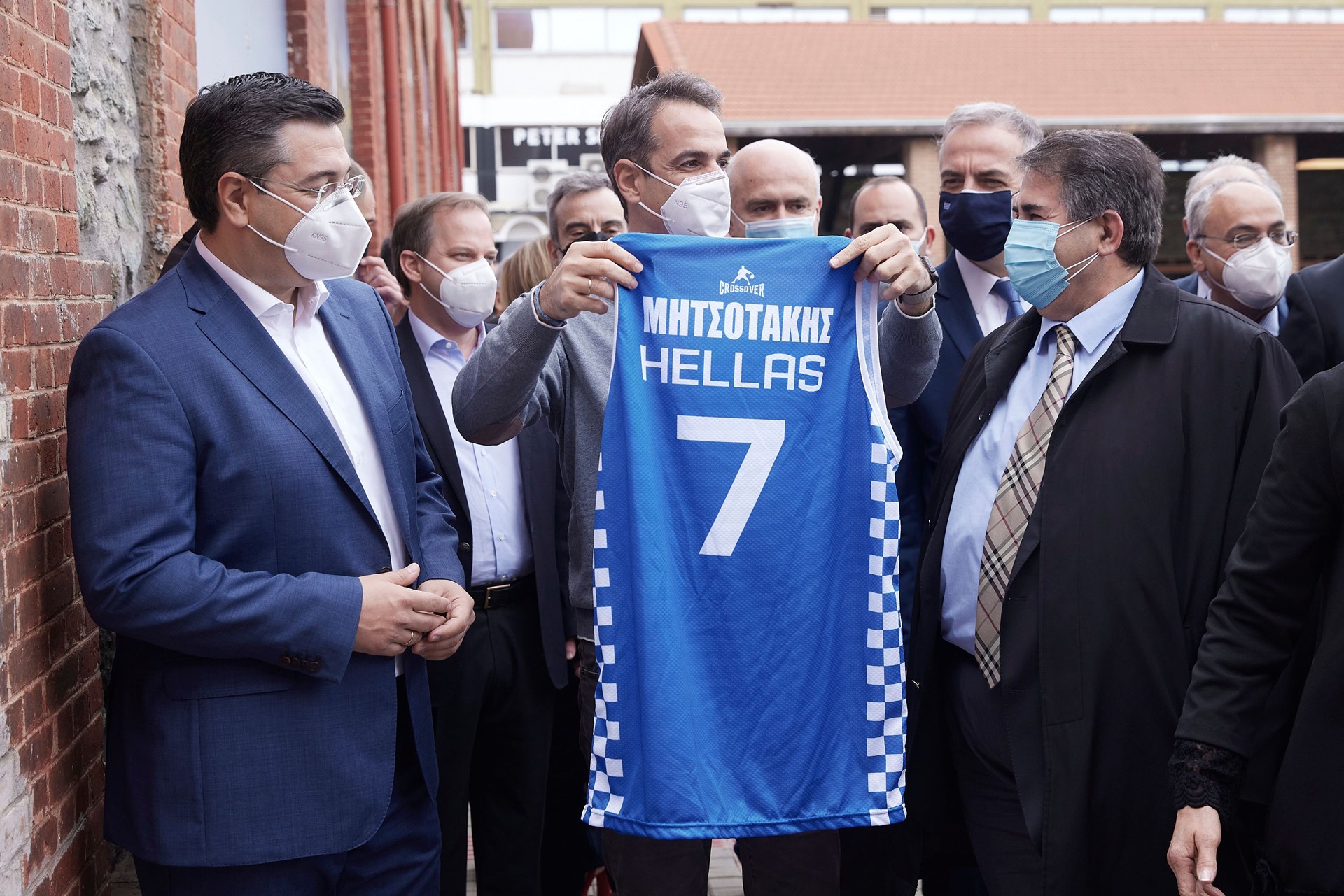 Ο κ. Μητσοτάκης ως δώρο μια αθλητική φανέλα με το νούμερα 7 και το όνομά του γραμμένο πάνω της.