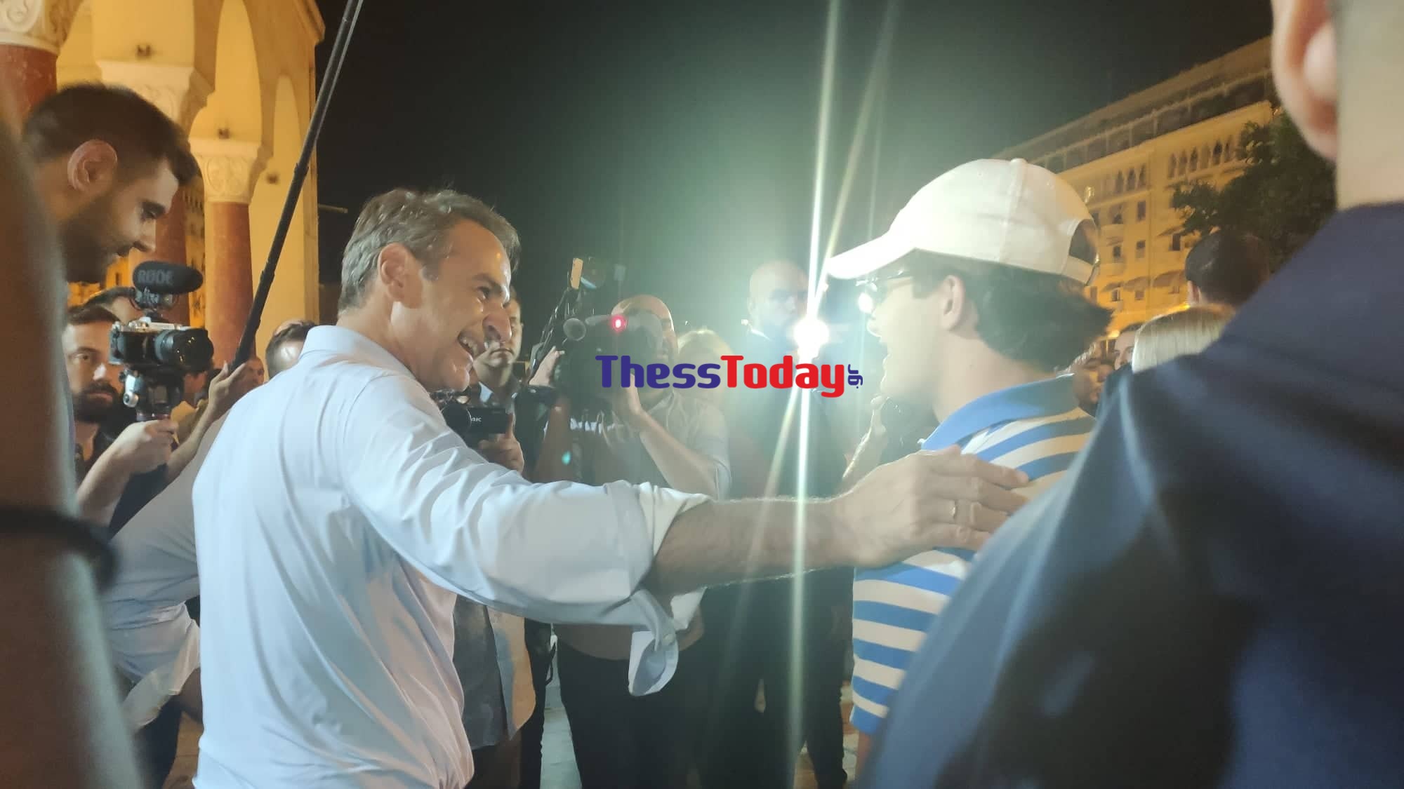 Βόλτα στην πλατεία Αριστοτέλους έκανε ο πρωθυπουργός Κυριάκος Μητσοτάκης, λίγο μετά τις 21.00 συνοδευόμενος από μέλη και βουλευτές της Νέας Δημοκρατίας, Ο κ. Μητσοτάκης είχε την ευκαιρία να ανταλλάξει χειραψίες με περαστικούς και να συνομιλήσει μαζί τους.