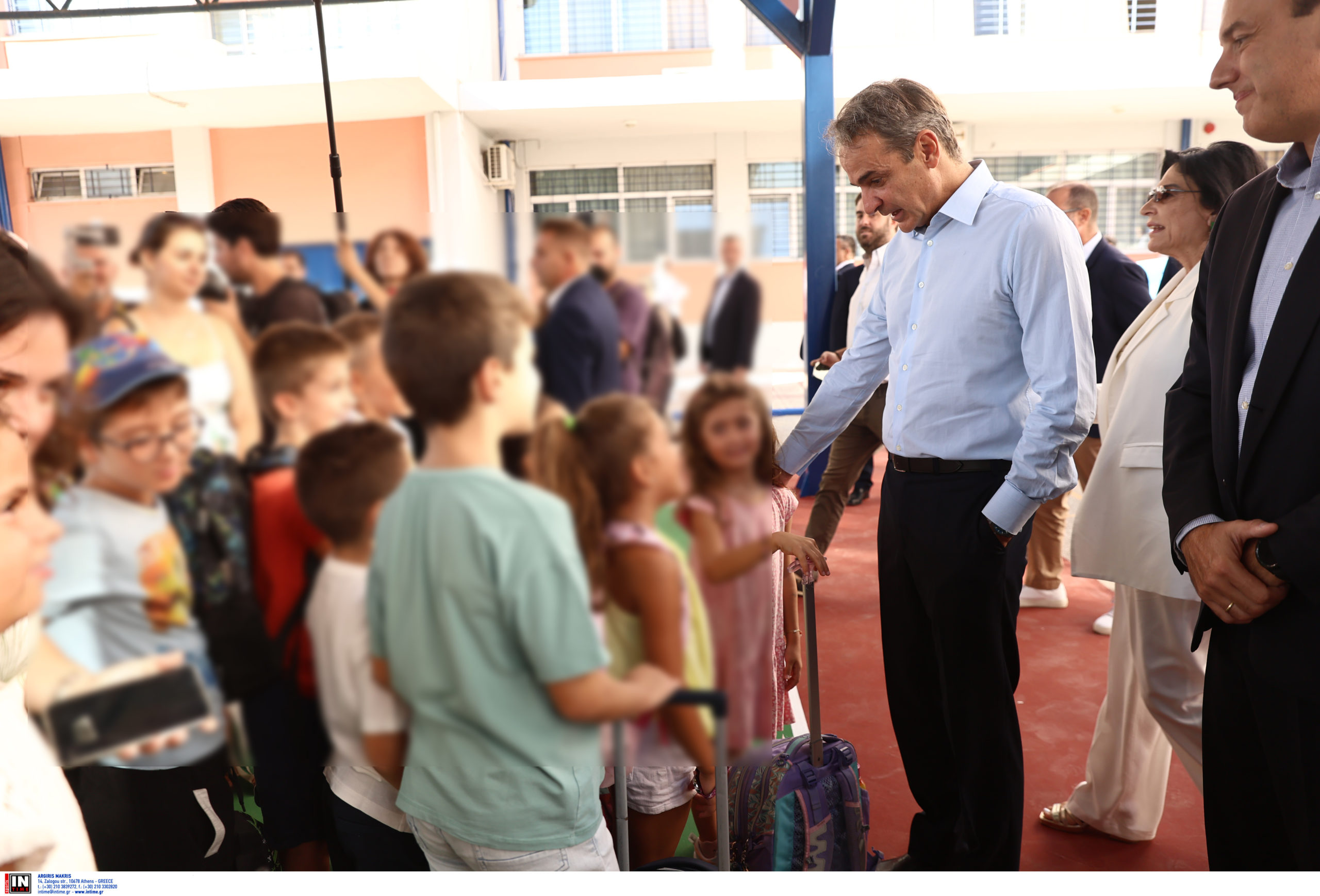 Τα σχολεία ανοίγουν σήμερα, οι μαθητές επιστρέφουν στα θρανία και ο Κυριάκος Μητσοτάκης παραβρέθηκε στον αγιασμό για την έναρξη της σχολικής χρονιάς στο 2ο Δημοτικό της Γλυφάδας.