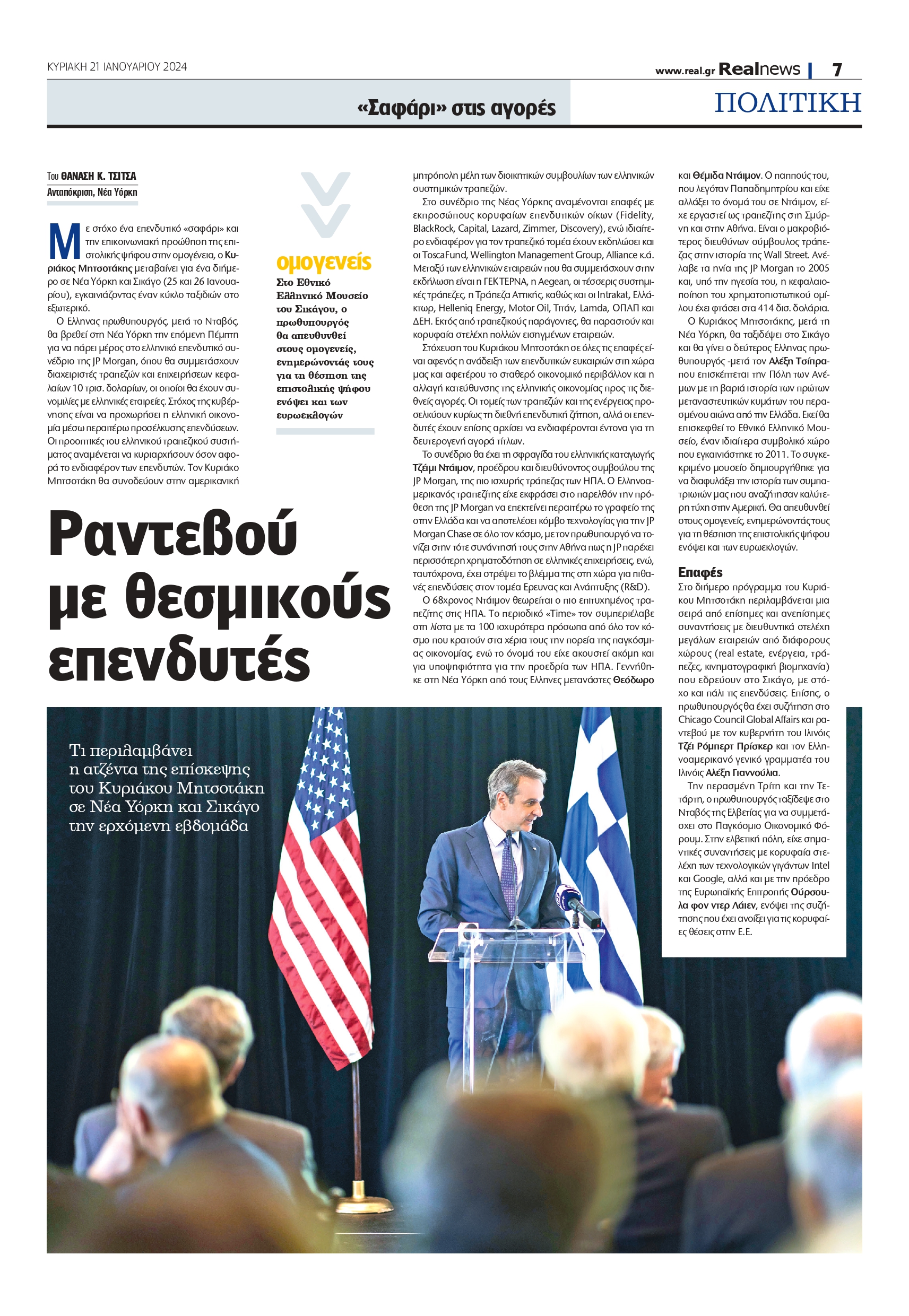 Με στόχο ένα επενδυτικό «σαφάρι» και την επικοινωνιακή προώθηση της επιστολικής ψήφου στην ομογένεια, ο Κυριάκος Μητσοτάκης μεταβαίνει για ένα διήμερο σε Νέα Υόρκη και Σικάγο (25 και 26 Ιανουαρίου), εγκαινιάζοντας έναν κύκλο ταξιδιών στο εξωτερικό.