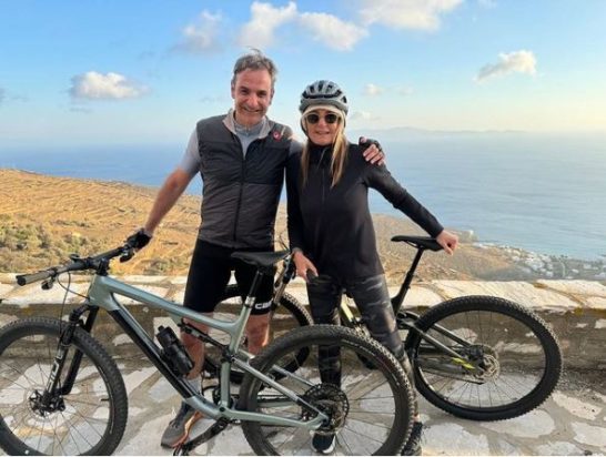 Ο πρωθυπουργός δίνει έμφαση τόσο στα έθιμα, όσο και στον αθλητισμό και την φυσική κατάσταση, αφού στην φωτογραφία που ανήρτησε απεικονίζονται ο ίδιος και η σύζυγος του, Μαρέβα Γκραμπόφσκι, να κάνουν ποδήλατο. Σχολιάζει, δε, ότι, «βόλτα με το ποδήλατο μετά το αρνί! Βοηθάει και στη χώνεψη! Χρόνια πολλά!».