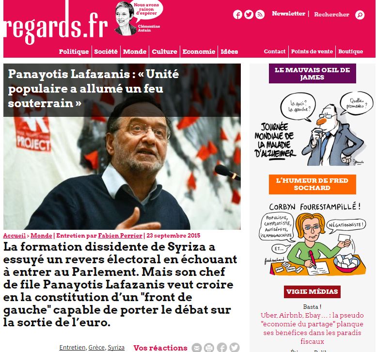 Διαβάστε τη συνέντευξη του Παναγιώτης Λαφαζάνη στο γαλλικό περιοδικό Regards: