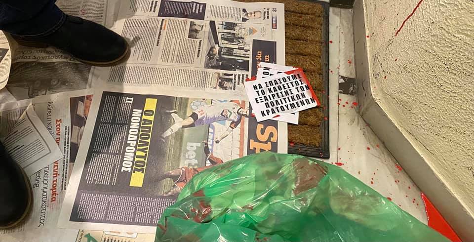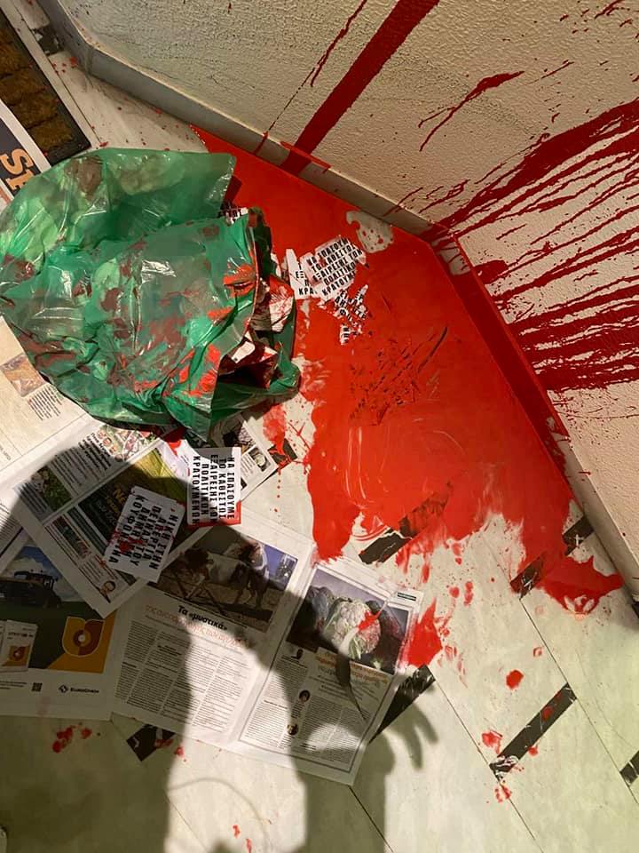 Άγνωστοι στην είσοδο του γραφείου, πέρα από τις μπογιές, πέταξαν και τρικάκια. Ο κ. Κέλλας στην πρώτη αντίδραση του για το συμβάν επισημαίνει τα εξής: