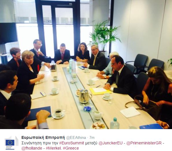 Πριν από λίγο ολοκληρώθηκε η συνάντηση του Αλέξη Τσίπρα με τους Άνγκελα Μέρκελ, Φρανσουά Ολάντ και Ζαν Κλοντ Γιούνκερ.