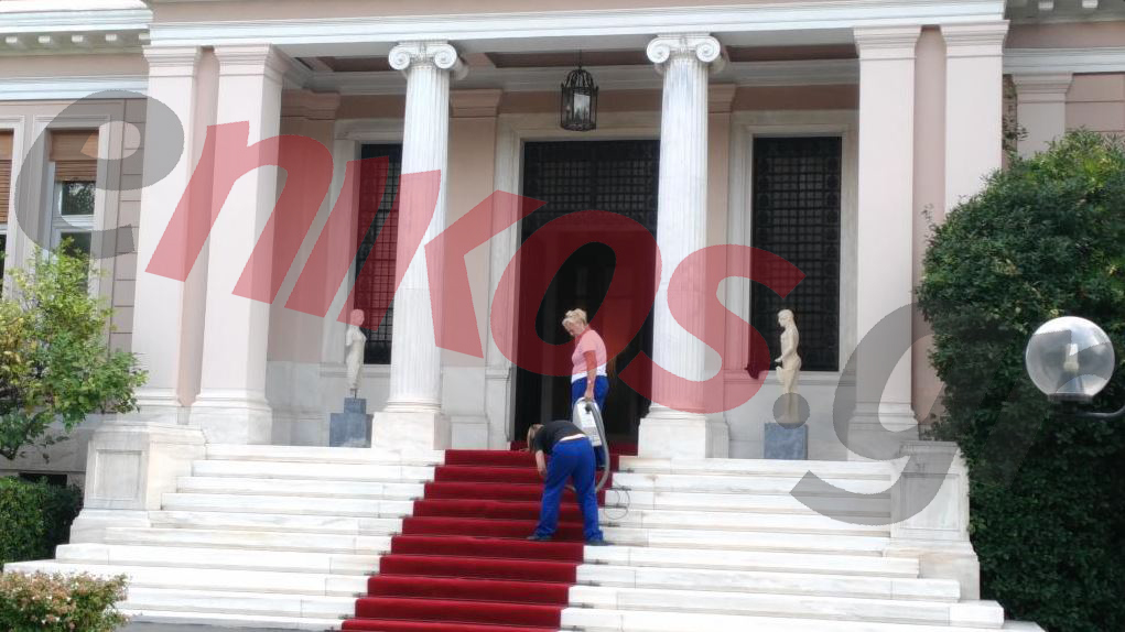 Επίσης, στο Μέγαρο Μαξίμου, έχουν επιδοθεί σε εντατικές εργασίες καθαρισμού, ξεκινώντας από το σκούπισμα του κόκκινου χαλιού.