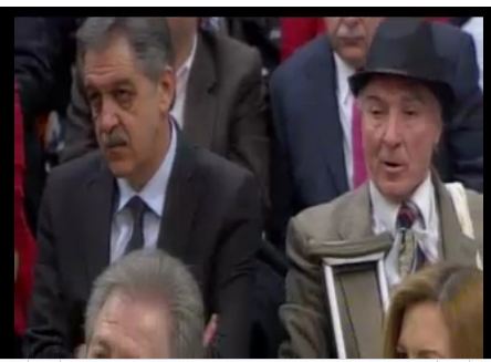 Ο ηλικιωμένος που κάθεται δίπλα στον Π.Κουκουλόπουλο με την άσπρη τσάντα πλησίασε τον Ευάγγελο Βενιζέλο. Τι έγινε στην συνέχεια; Φήμες λένε ότι του πέταξε γιαούρτι…