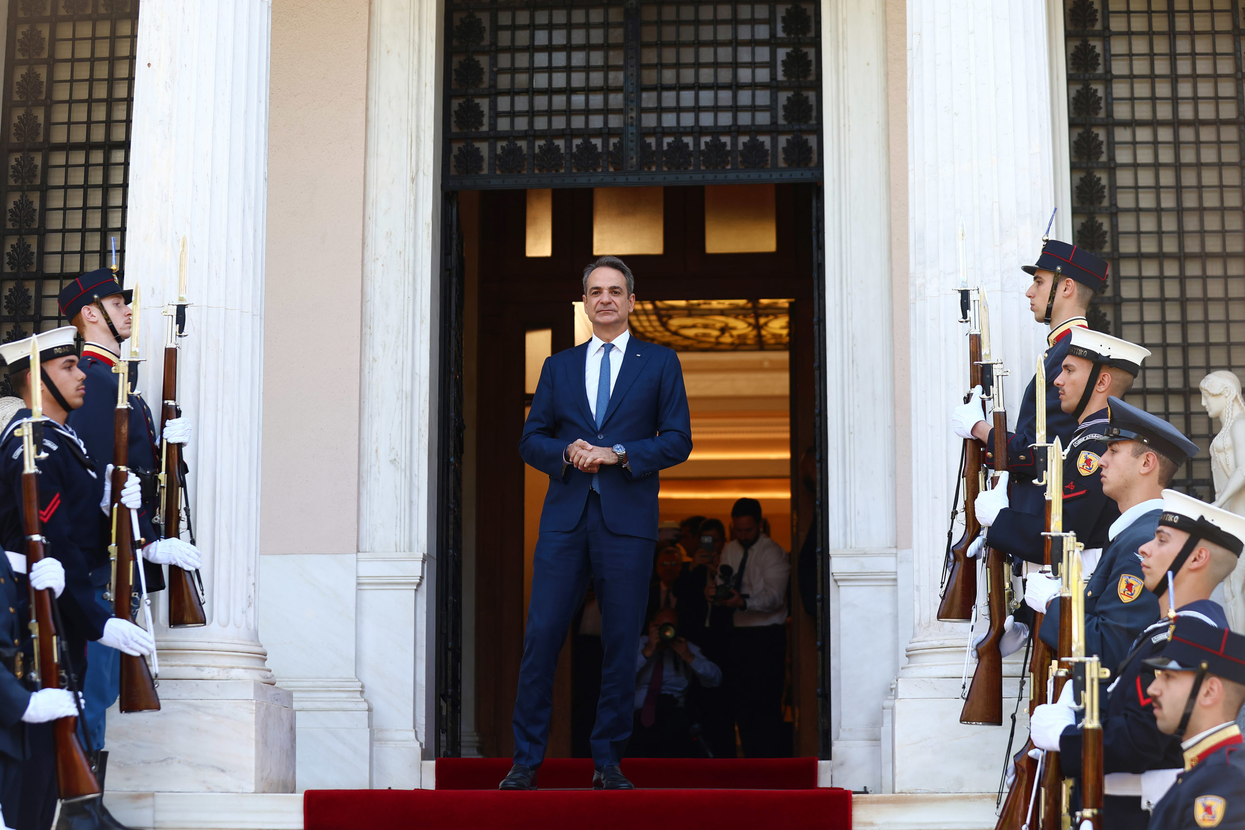 Η υποδοχή του Μακρόν από τον Πρωθυπουργό στο Μαξίμου