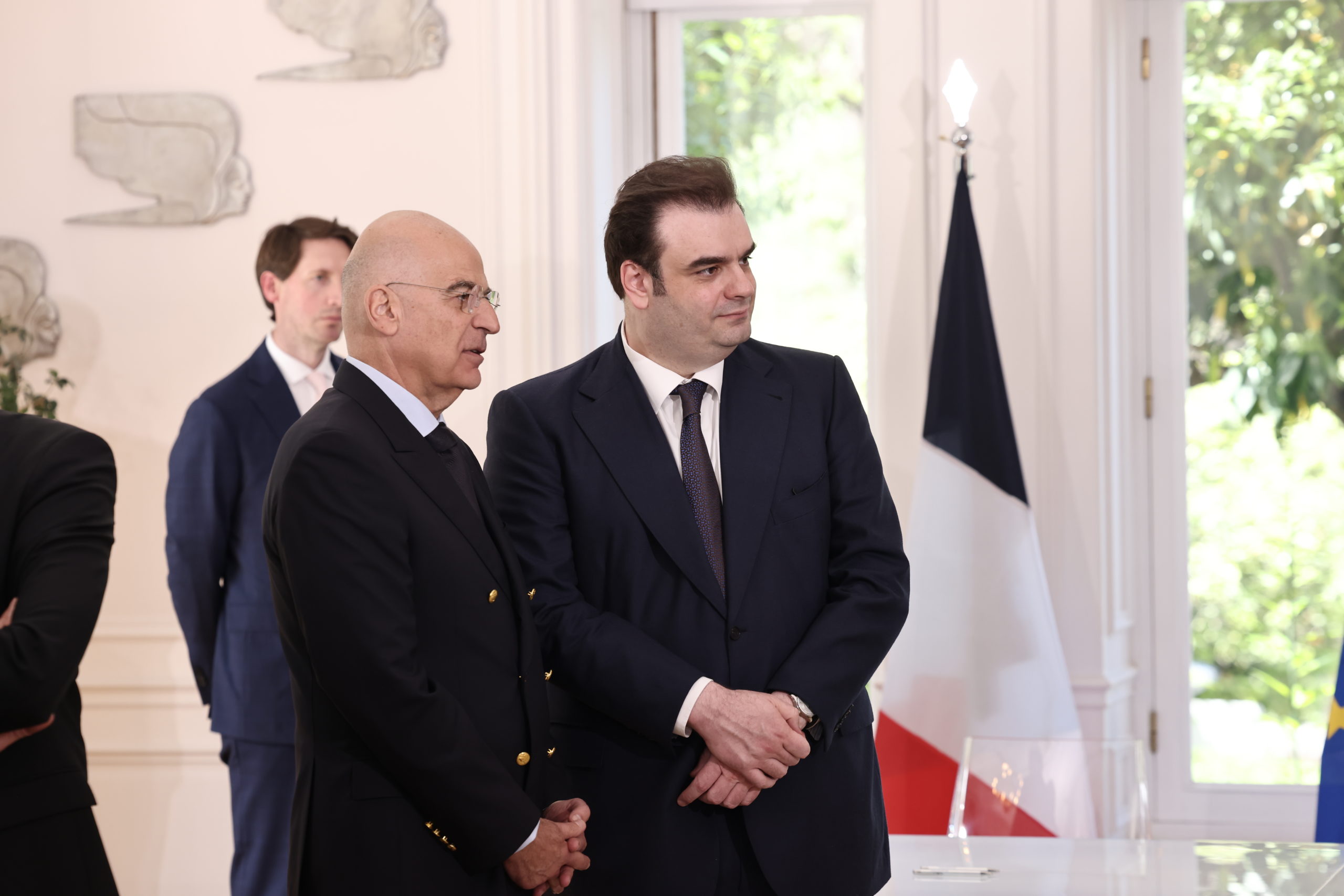 Μετά το τέλος του τετ α τετ στο Μαξίμου, ακολούθησε η υπογραφή της στρατηγικής συμφωνίας, με επίκεντρο την άμυνα, τη γεωπολιτική συνεργασία και την ενίσχυση της ευρωπαϊκής αυτονομίας και αυτή την ώρα γίνονται οι κοινές δηλώσεις των δύο ηγετών.