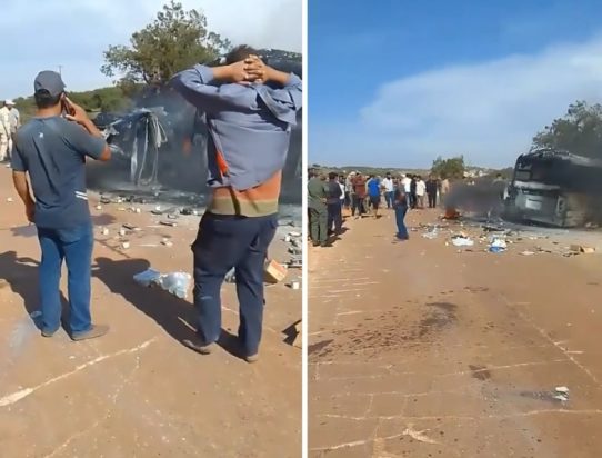 Εικόνες που κόβουν την ανάσα από το τροχαίο στην Λιβύη. Σύμφωνα με πληροφορίες του enikos.gr αυτό συνέβη περίπου στις 4.00 το απόγευμα της Κυριακής, ώρα Ελλάδος. Ο υπουργός Υγείας της Λιβύης κάνει λόγο για 4 νεκρούς.