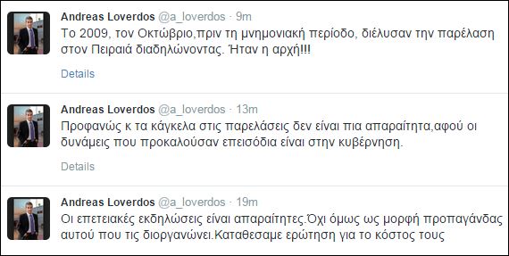 Δείτε τις διαδοχικές αναρτήσεις του Ανδρέα Λοβέρδου στο twitter